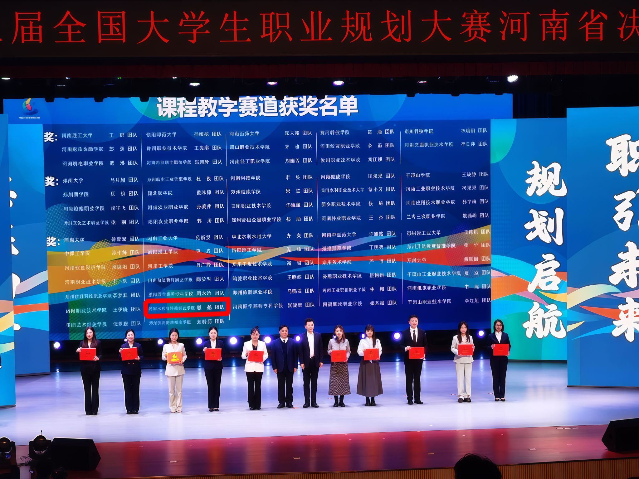 1月28日,第三届全国大学生职业规划大赛河南省赛总决赛圆满落幕。本届大赛由河南省教育厅主办,以“筑梦青春志在四方,规划启航职引未来”为主题,吸引了全省178所高校、逾190万名学生报名参赛。经过层层选拔与现场激烈角逐,我校选手与教师团队表现优异,共斩获金奖1项、银奖3项、铜奖2项。其中,信息工程学院吴锋谕同学勇夺金奖,测绘地理信息学院秦书杰、纪昌政同学与机电工程学院梁云峰同学荣获银奖,经济管理学院苗怡涵同学获得铜奖。教师赛道中,我校殷越、王宏、方艺璇、于珍珠、何欢教师团队荣获铜奖。此次获奖不仅实现了我校在该赛事省级奖项数量上的突破,更在获奖质量上取得显著提升。
